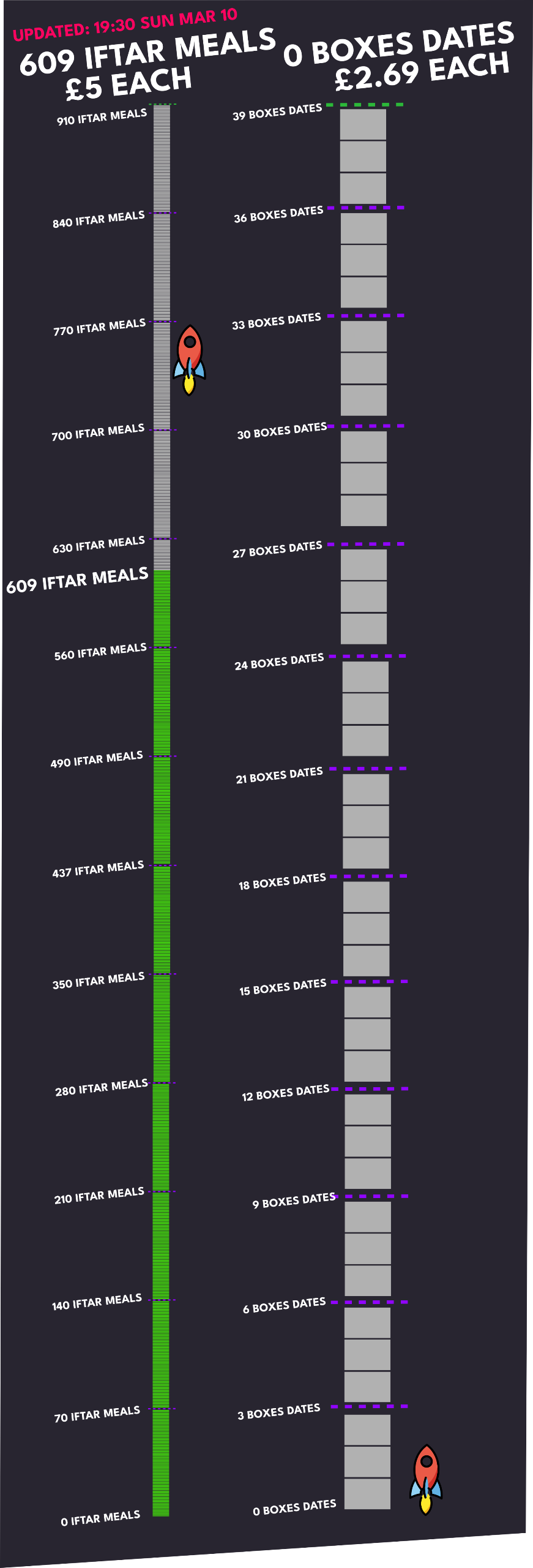 On 2098 iftars. 26.23 Nights. Target 2320 Iftars.(Change reference from cdownie to YOUR NAME)