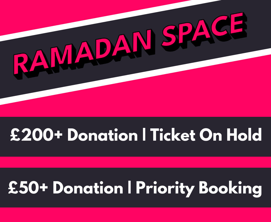Priority - £50+ Donation | Book Tickets 1 Day Before Ramadan Space Tickets GroupHold - £200+ Donation | Ticket ON HOLD & Never Released For Sale.